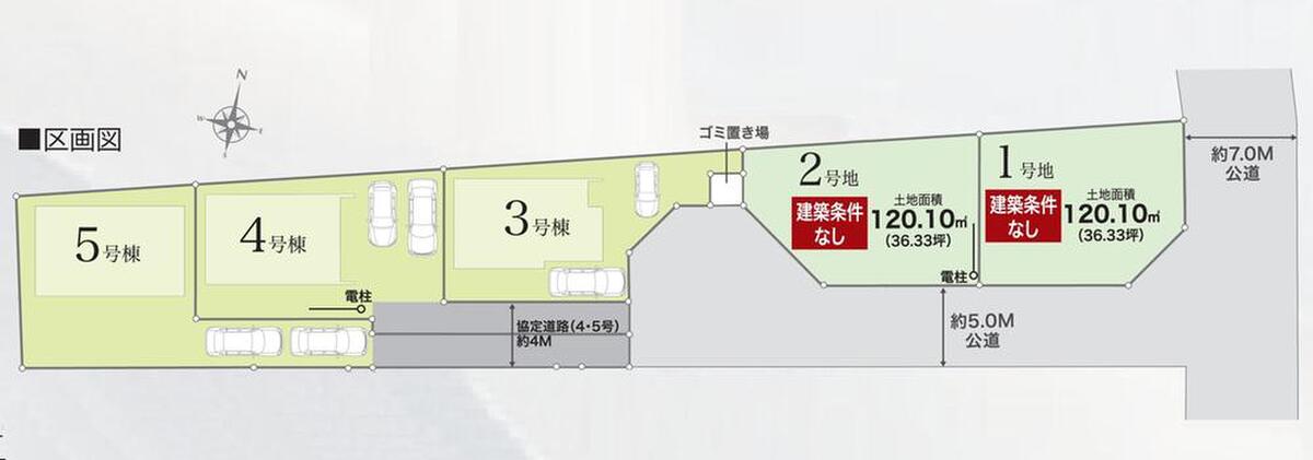 | 駐車場 | 2台 | 道路の幅員 | 道路幅:5m、アスファルト舗装、(東5.01m公道) |