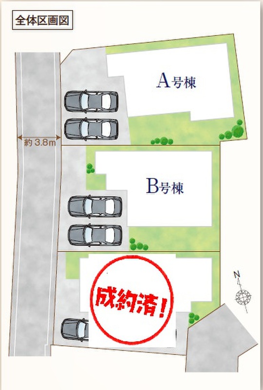 | 駐車場 | 1台 | 道路の幅員 | 道路幅:3.8m・4.5m、アスファルト舗装、(南4.5m私道、西3.82m公道) |