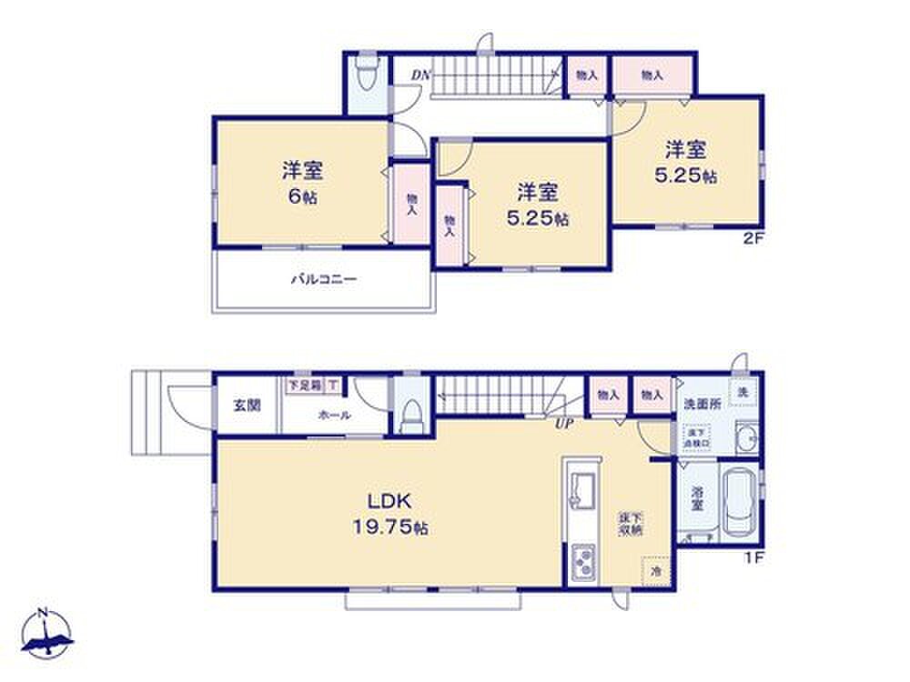 全居室南向き、水廻り集中設計、リビングイン階段、WIC、リビング収納、洗面室・ホール物入、