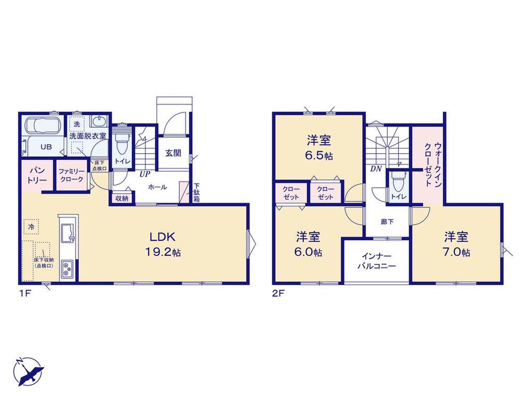 浴室乾燥機、ファミリークローク、WIC、パントリー、玄関ホール収納、インナーバルコニー、駐車3台可能等