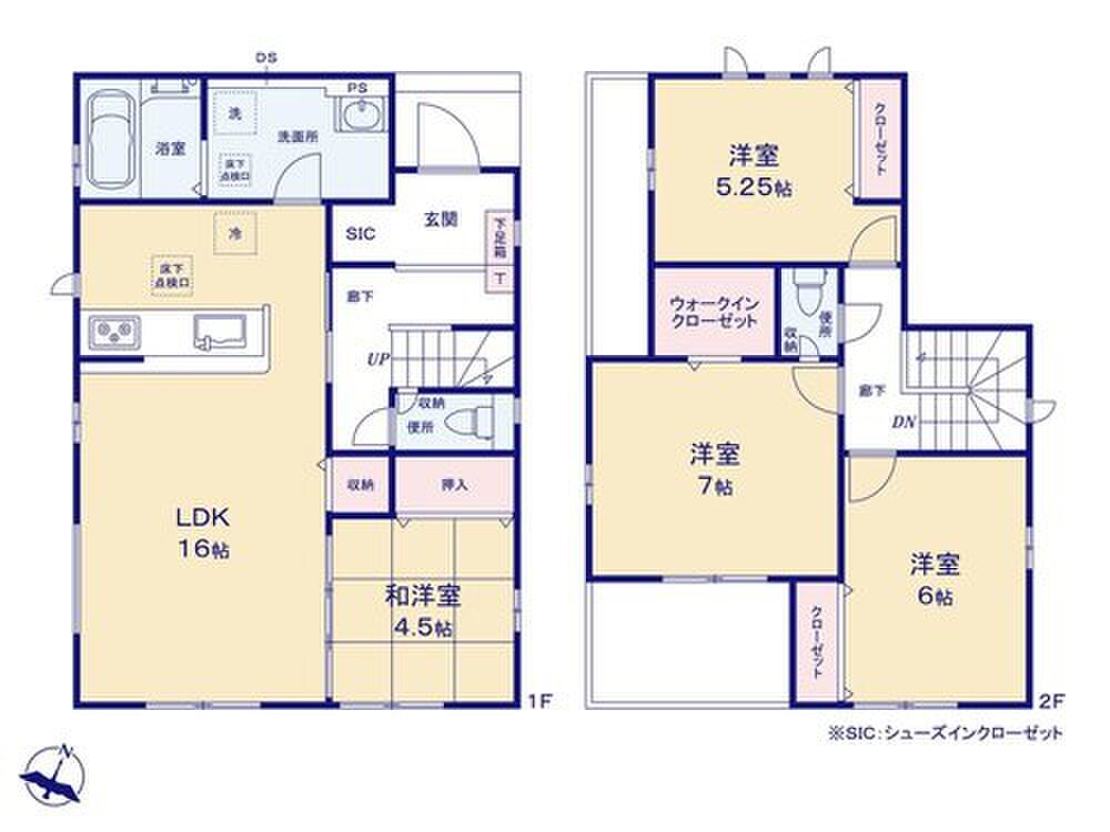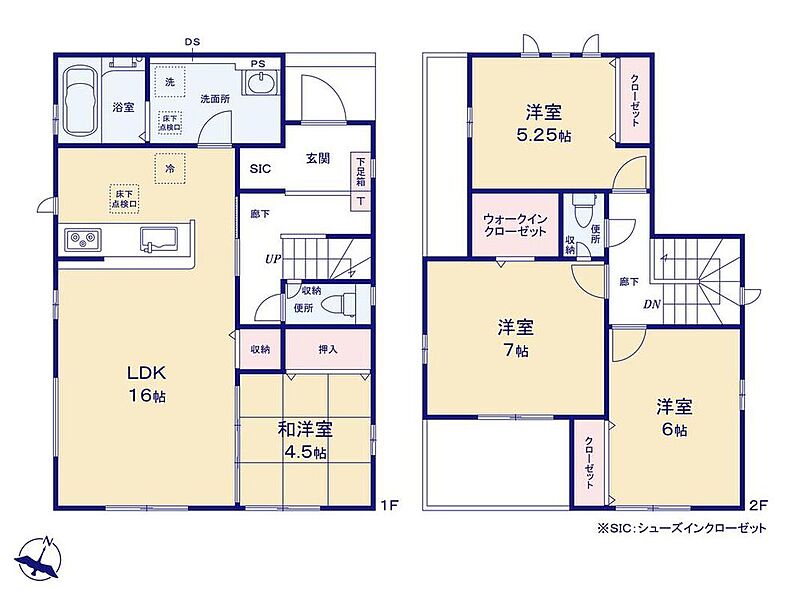 ~浴室乾燥機、和室、水廻り集中設計、WIC、SC、LDK物入、床下収納、南庭、駐車2台可等~