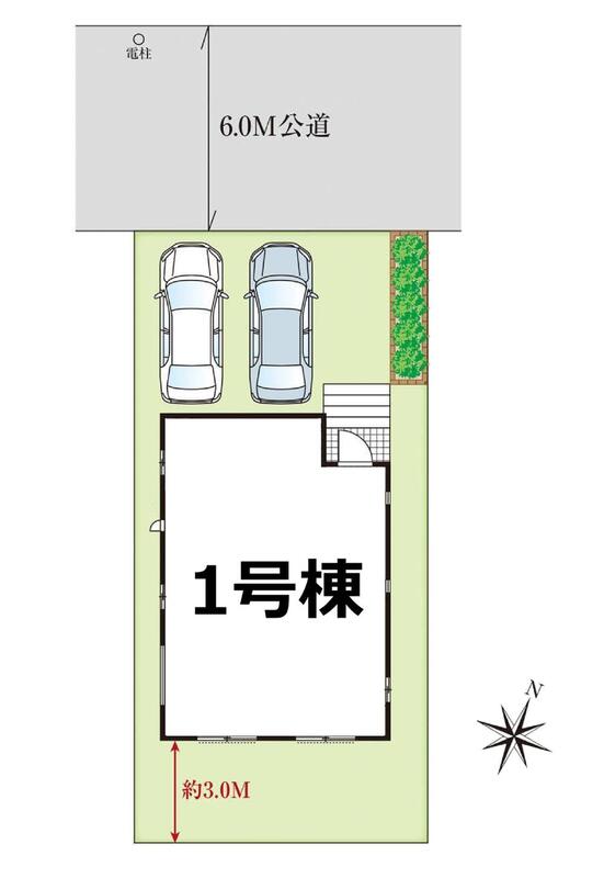| 駐車場 | 2台(車種による) | 道路の幅員 | 道路幅:6m、アスファルト舗装、(北側6m公道) |