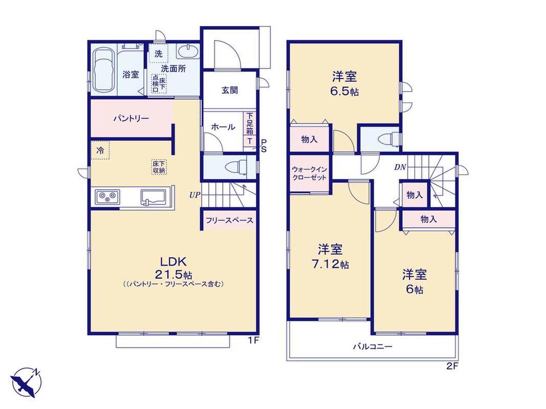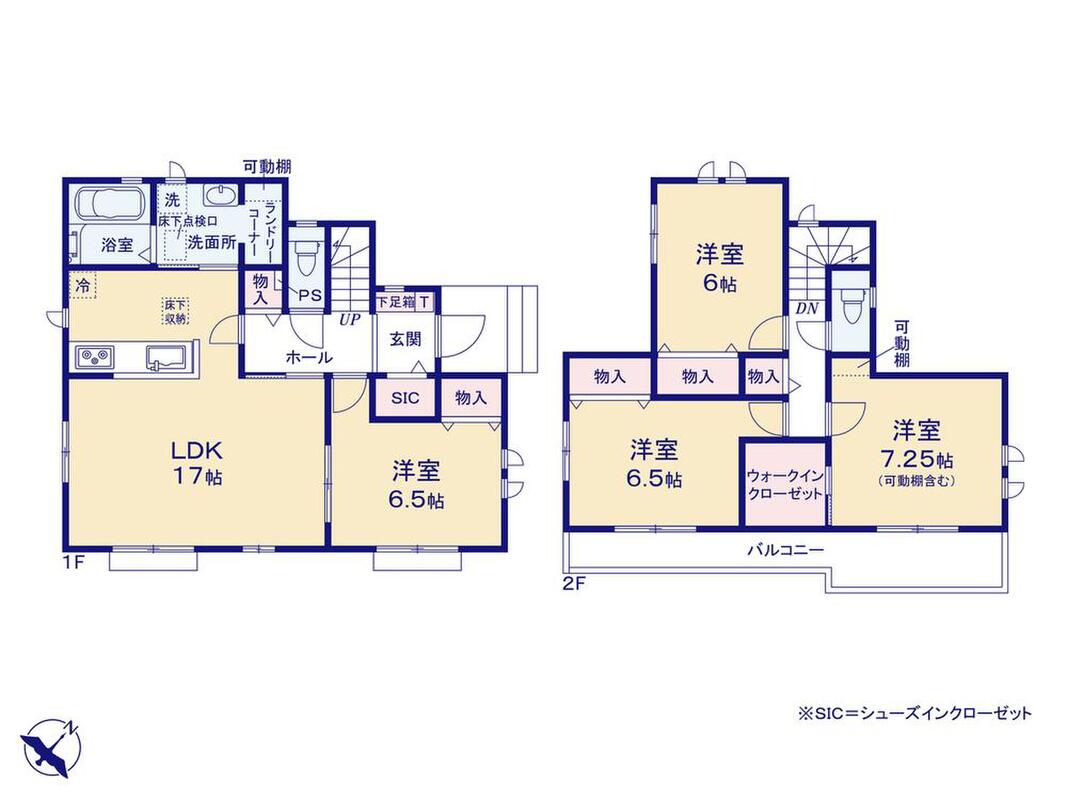 水廻り集中設計、全洋室、納戸、WIC、SIC、パントリー、ランドリーコーナー、ワイドバルコニー、庭、駐車2台可能等!