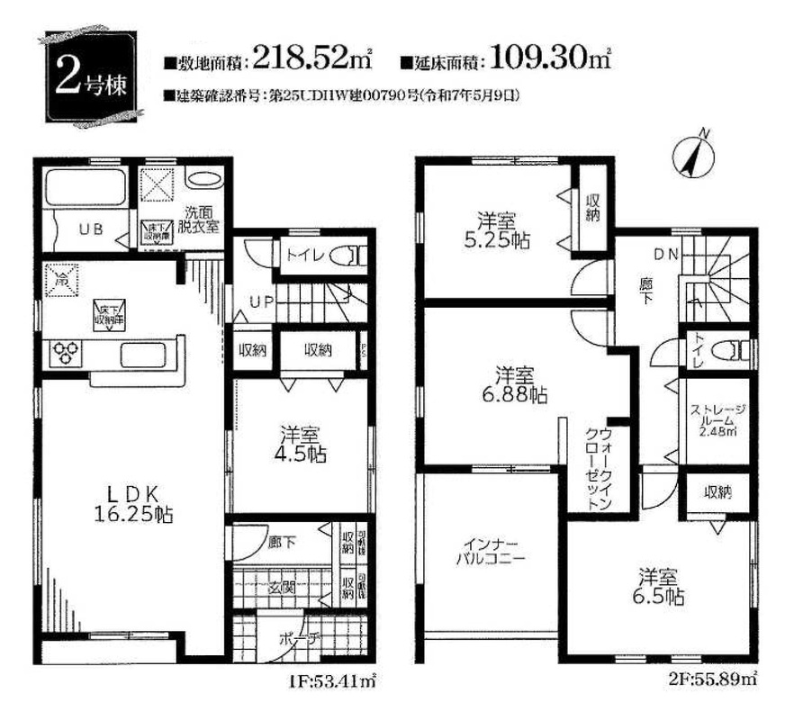 | 建物面積 | 108.06m2・109.3m2 | 土地面積 | 186.38m2~237.08m2 |