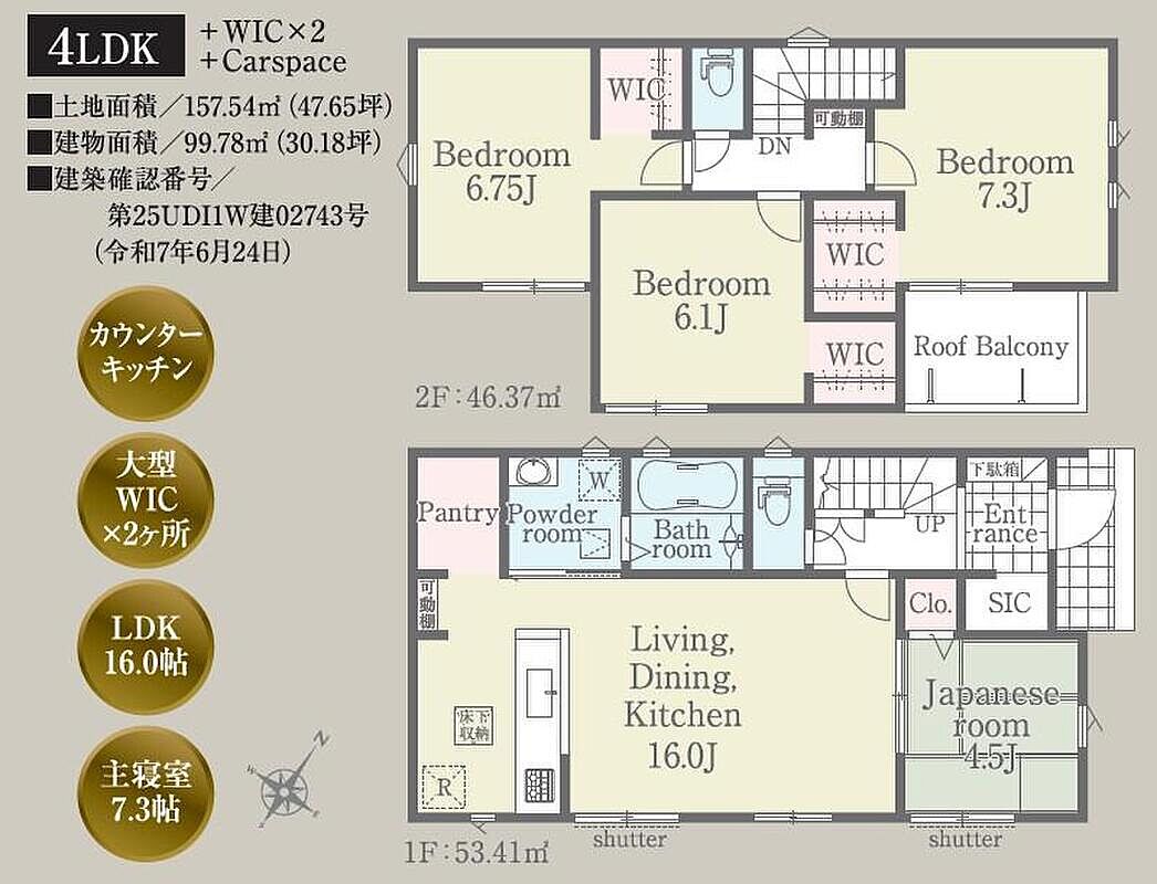 | 建物面積 | 99.78m2 | 土地面積 | 157.54m2 |