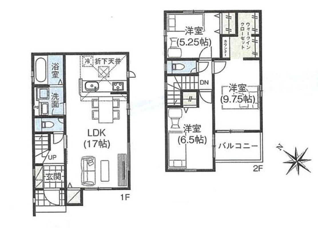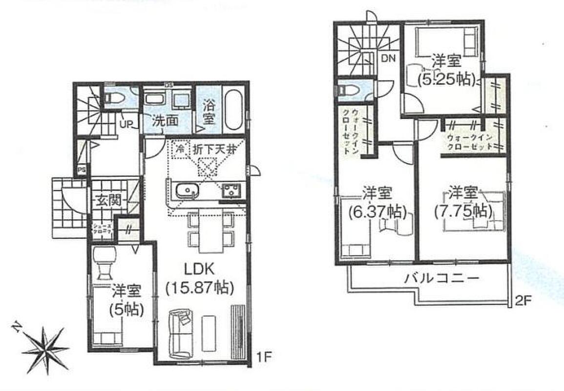 | 間取り | 3LDK・4LDK | 建物構造 | 木造サイディング貼アスファルトシングル葺2階建て |