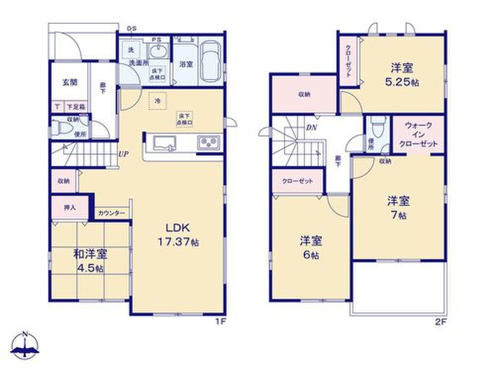 ◇◆本日、ご見学出来ます!◆◇ 全棟WIC付き!SCやリネン庫、リビング収納や2階ホール収納等、収納が充実のプラン!2号棟には便利なランドリールーム付です!