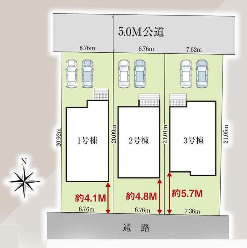 | 駐車場 | 2台(車種による) | 道路の幅員 | 道路幅:5m、アスファルト舗装、(北5m公道) |