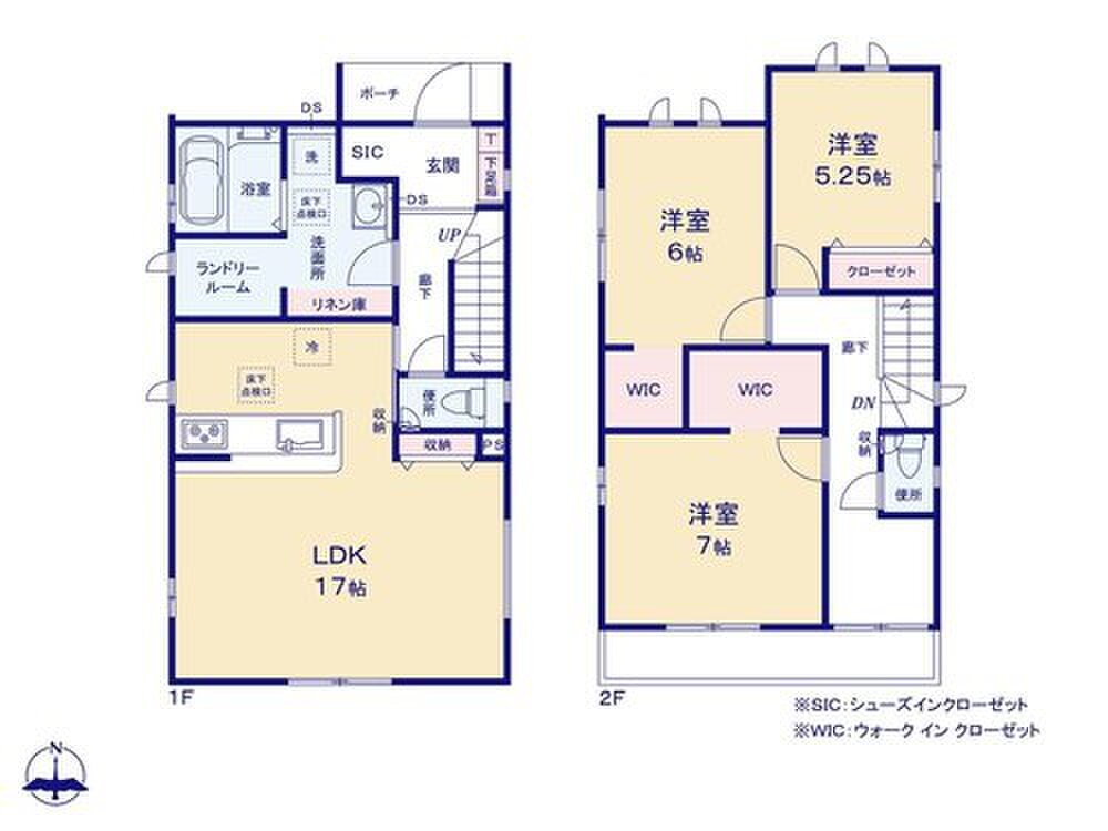 WIC2ヶ所・SC・リネン庫等、収納が充実