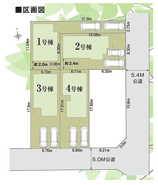 | 駐車場 | 2台(車種による) | 道路の幅員 | 道路幅:5m・5.4m、アスファルト舗装 |