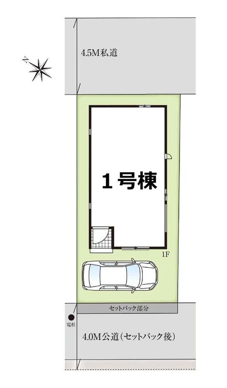 | 駐車場 | 1台 | 道路の幅員 | 道路幅:3.3m・4.5m、アスファルト舗装、(北東4.5m私道、南西3.37m公道) |