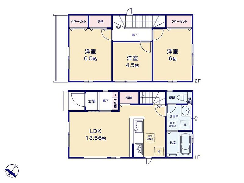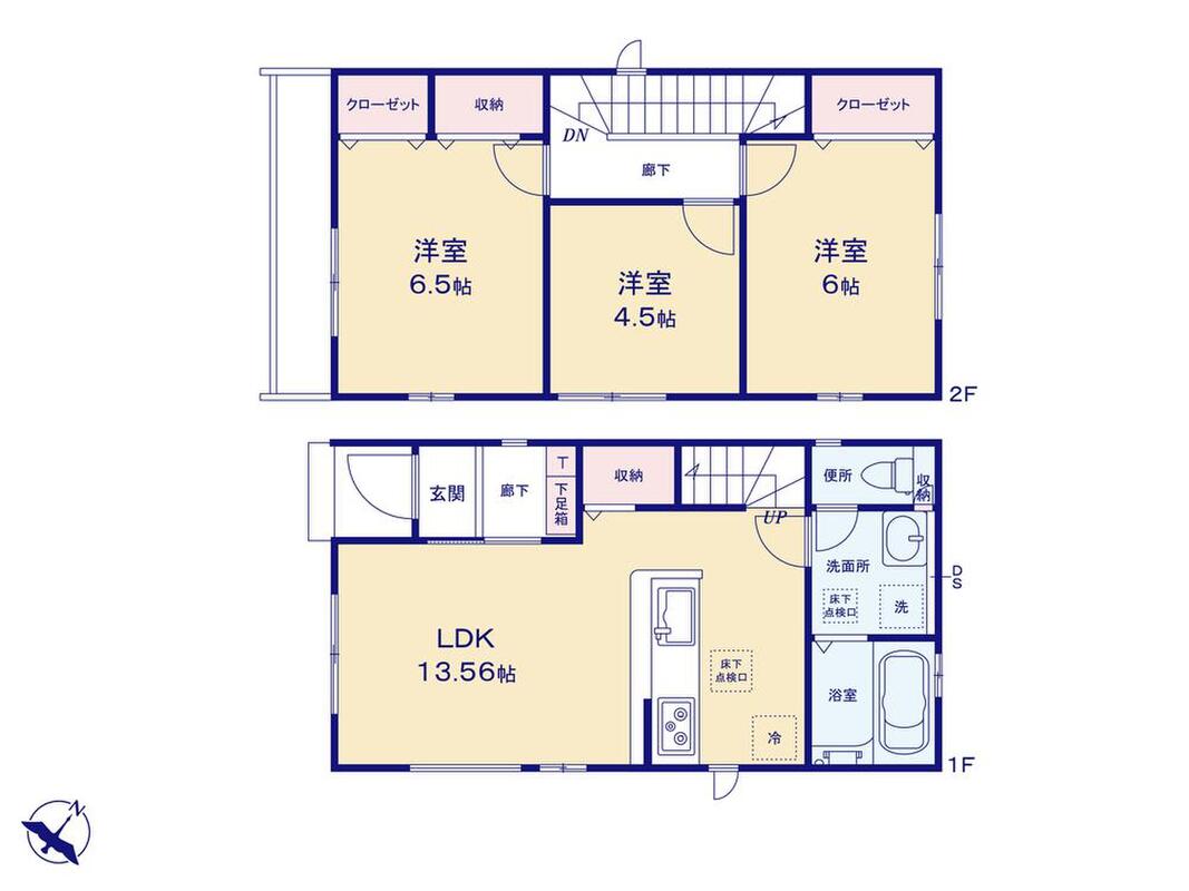 ・浴室乾燥機・水廻り集中設計・リビングイン階段・全洋室・リビング収納・床下収納・カースペース1台分など