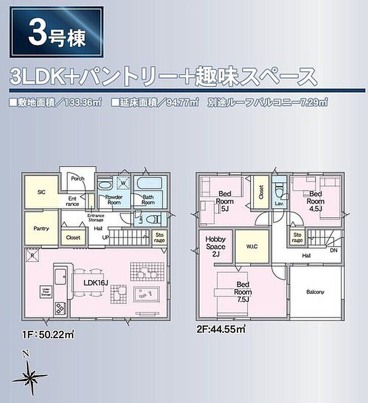 3号棟 間取り 3LDK+S 価格 2480万円 建物面積 94.77m2 土地面積 133.36m2 -