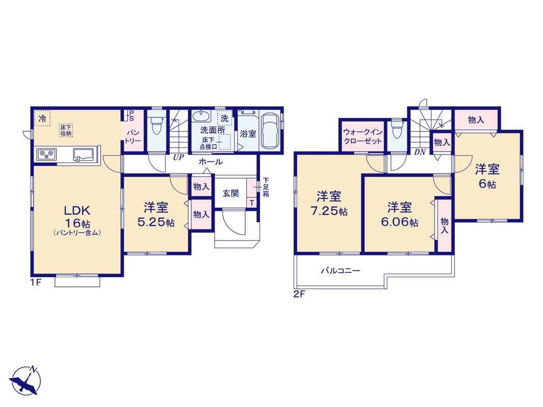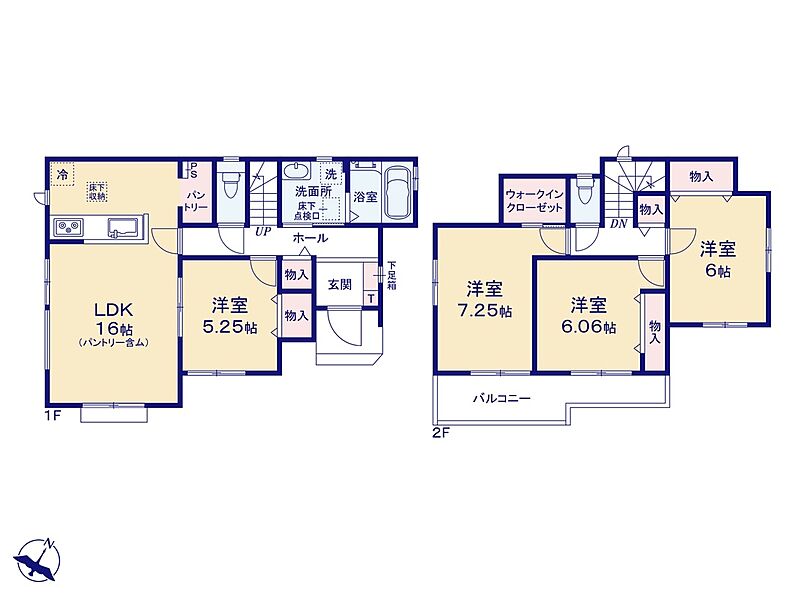 ・水廻り集中設計、全洋室、WIC、パントリー、フリーコーナー、ワイドバルコニー、庭、駐車2台可能など