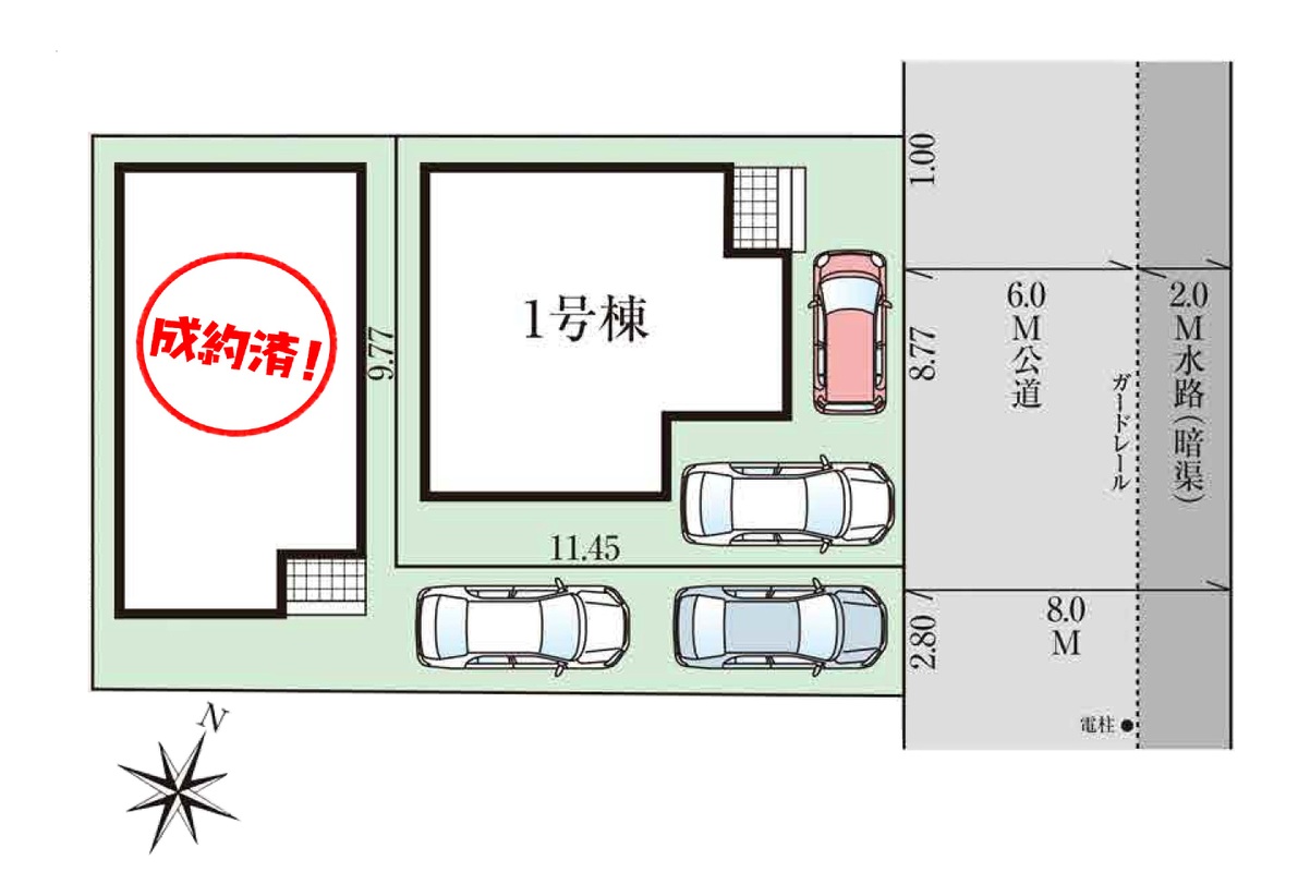 | 駐車場 | 2台(車種による) | 道路の幅員 | 道路幅:6m、アスファルト舗装 |