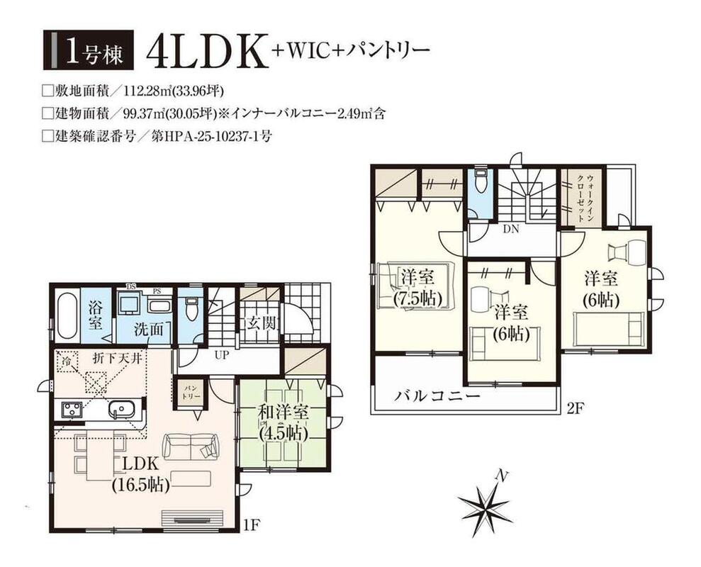 | 建物面積 | 99.37m2 | 土地面積 | 112.28m2 |