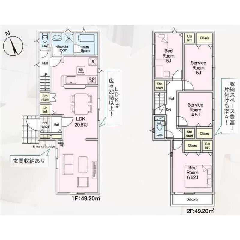 | 建物面積 | 95.58m2・98.4m2 | 土地面積 | 99.79m2・105.68m2 |