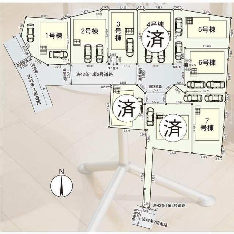 | 駐車場 | 1台 ~ 2台(1台(3号棟)、2台(1・2・5・6・7号棟)※車種による) | 道路の幅員 | 道路幅:5m・5.5m、アスファルト舗装 |