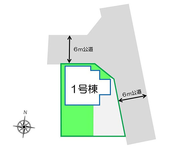 | 駐車場 | 2台(車種による) | 道路の幅員 | 道路幅:6m、アスファルト舗装、(東6m公道、北6m公道) |