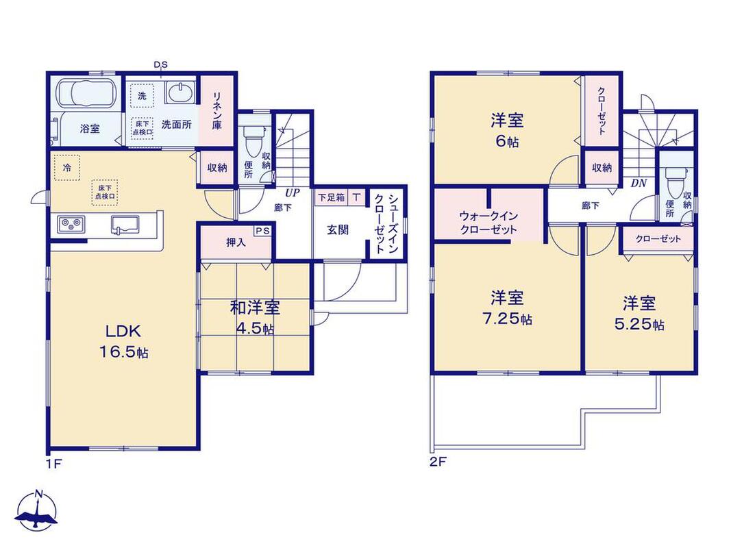 【この物件について】 ◇◆本日、ご見学出来ます!◆◇ 開放感のある角地、奥行きのある南庭付き♪大型WIC・SIC・リネン庫等、収納が充実したプランです!LDK、2階ホールにも収納があります!