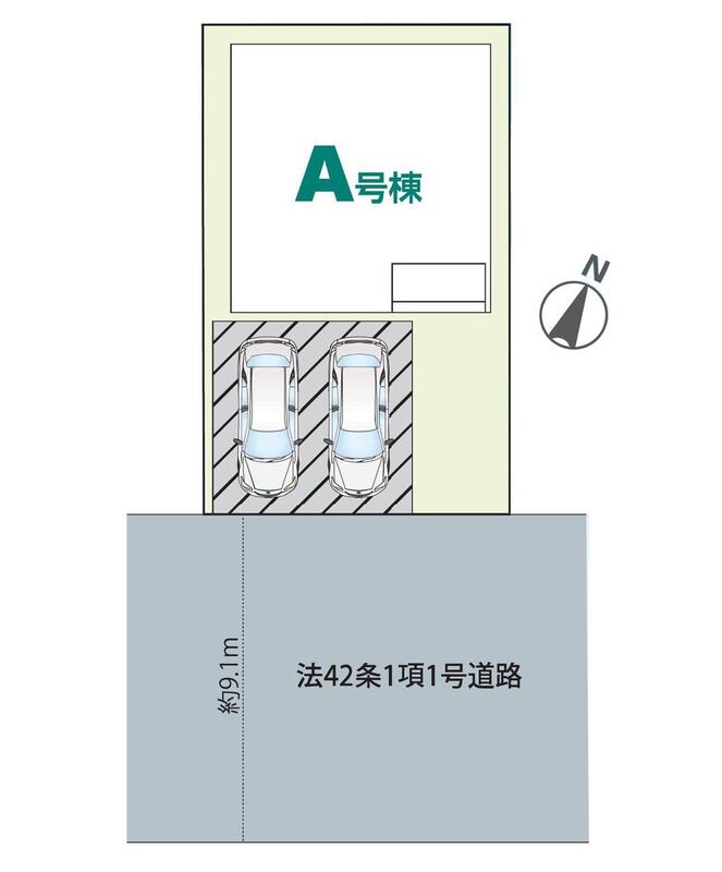 | 駐車場 | 2台(車種による) | 道路の幅員 | 道路幅:9.1m、アスファルト舗装、(南東側9.1m公道) |