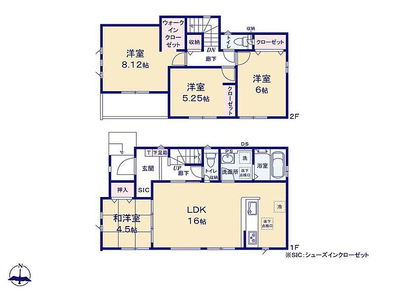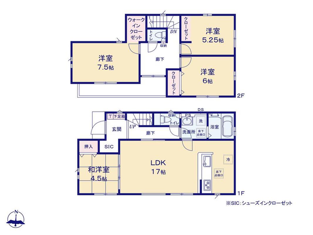 全居室南向き、浴室乾燥機、水廻り集中設計、和洋室、WIC、SC、