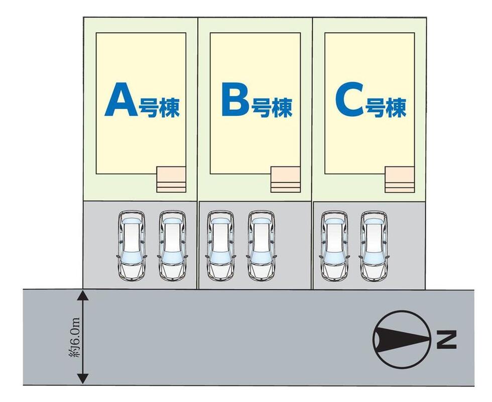 | 駐車場 | 2台(車種による) | 道路の幅員 | 道路幅:6m、アスファルト舗装、(東側6m公道) |
