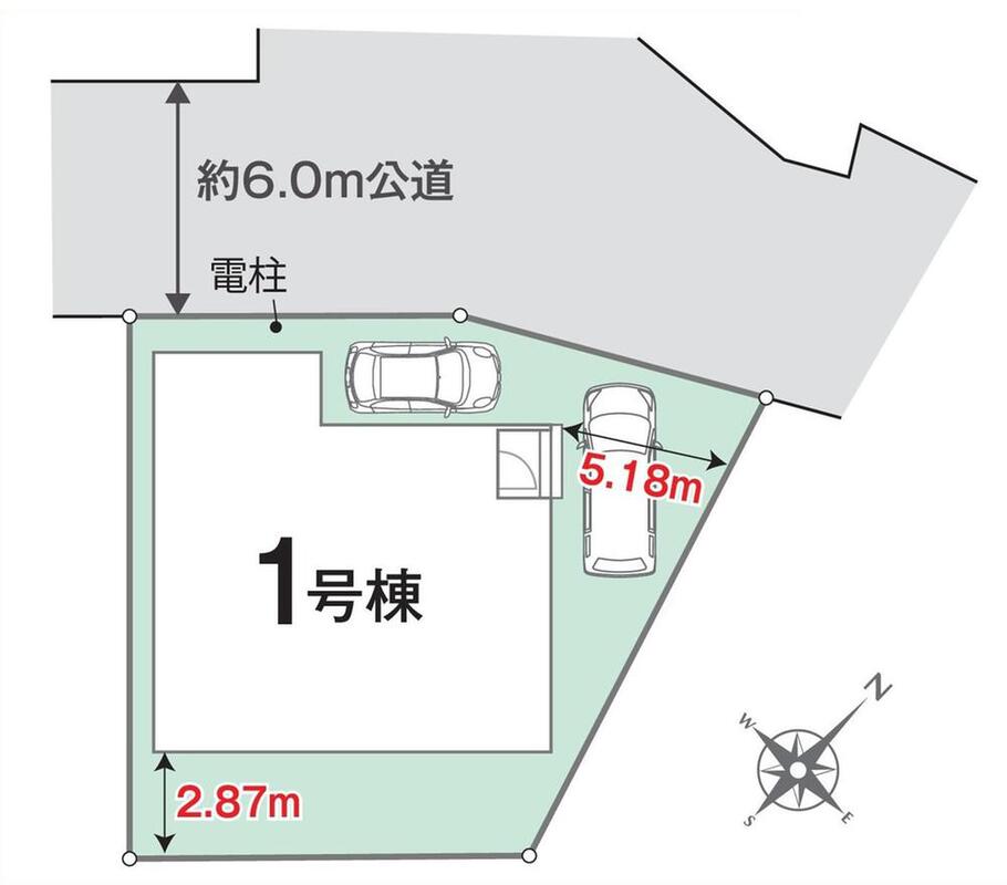 | 駐車場 | 2台(車種による) | 道路の幅員 | 道路幅:6m、アスファルト舗装、(北西6m公道) |