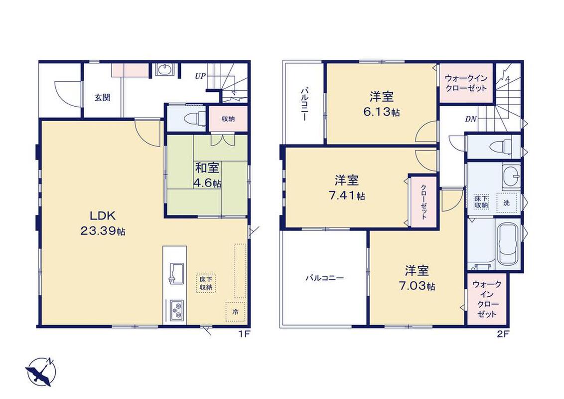 浴室乾燥機、LDK23帖、和室、WIC×2、セカンド洗面台、全室ペアガラス、バルコニー2ヵ所、カースペース有等!