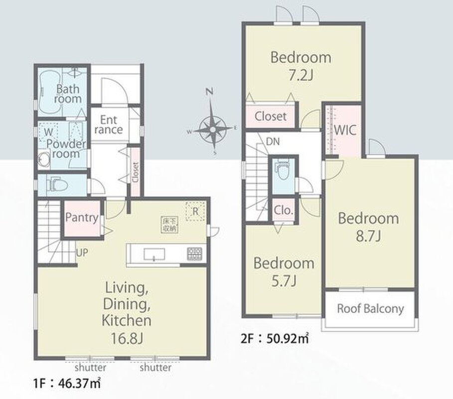 | 建物面積 | 97.29m2・100.61m2 | 土地面積 | 103m2・112.2m2 |