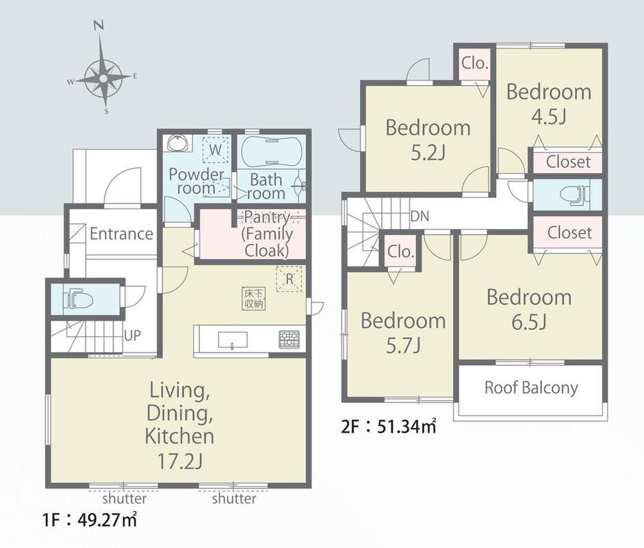浴室乾燥機、全洋室、リビングイン階段、ファミリークローク、WIC、パントリー、玄関クローゼット、