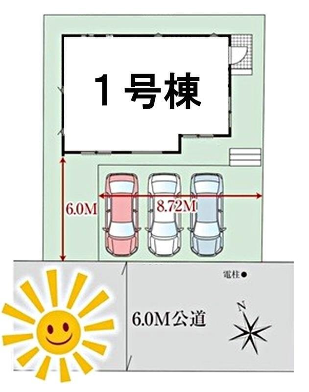 | 駐車場 | 3台(車種による) | 道路の幅員 | 道路幅:6m、アスファルト舗装、(南6m公道) |
