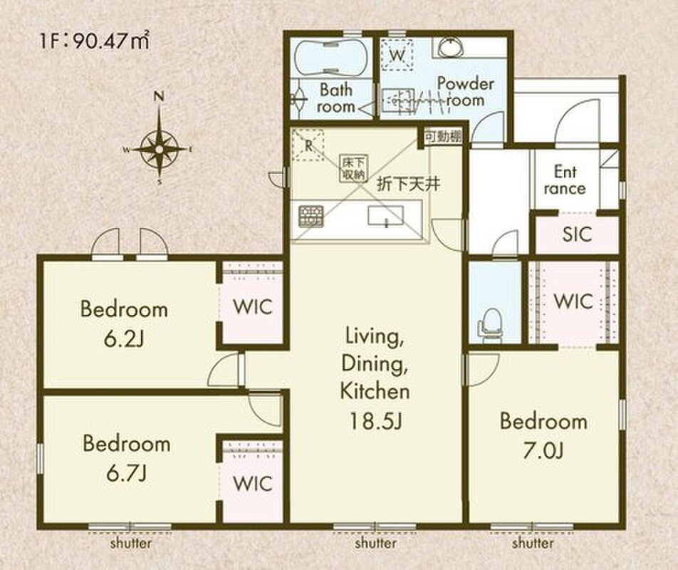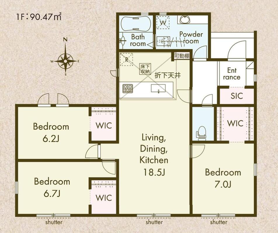 平屋、全洋室、浴室乾燥機、全室WIC、SIC