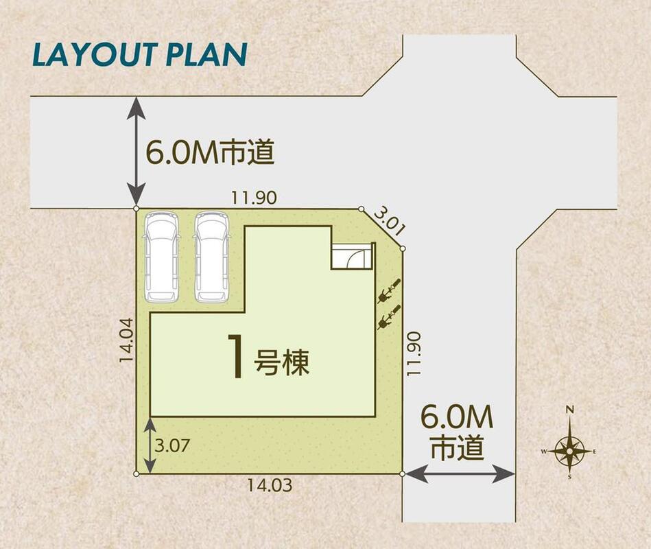 | 駐車場 | 2台(車種による) | 道路の幅員 | 道路幅:6m、アスファルト舗装 |
