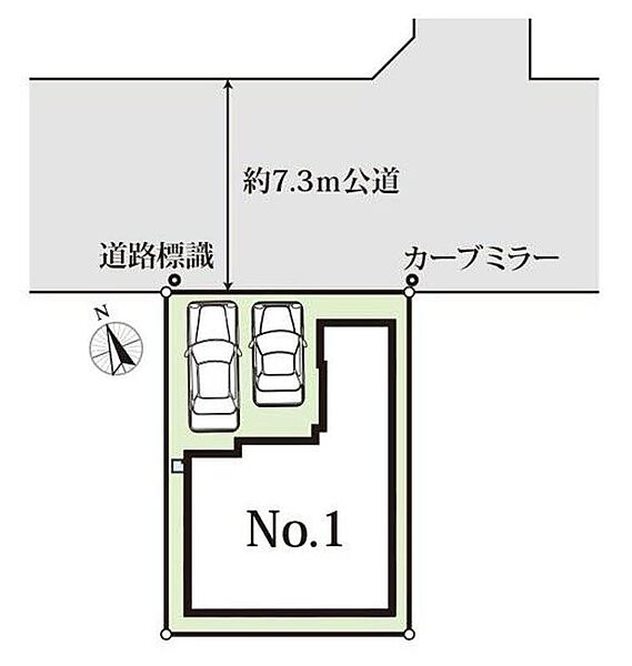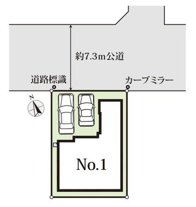 | 駐車場 | 2台(車種による) | 道路の幅員 | 道路幅:7.3m、アスファルト舗装、(北東7.3m公道) |