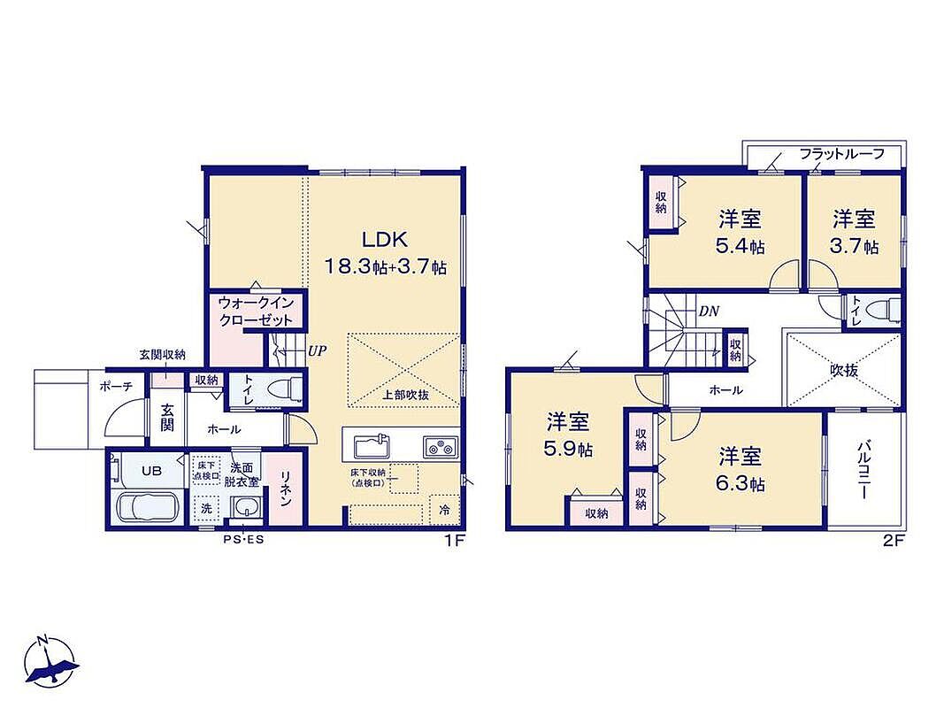 食洗機、浴室暖房乾燥機、全洋室、吹抜け、リビングイン階段、WIC、