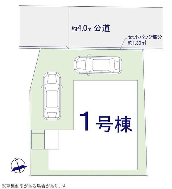 | 駐車場 | 2台(車種による) | 道路の幅員 | 道路幅:4m、アスファルト舗装、(北東 4m 公道) |