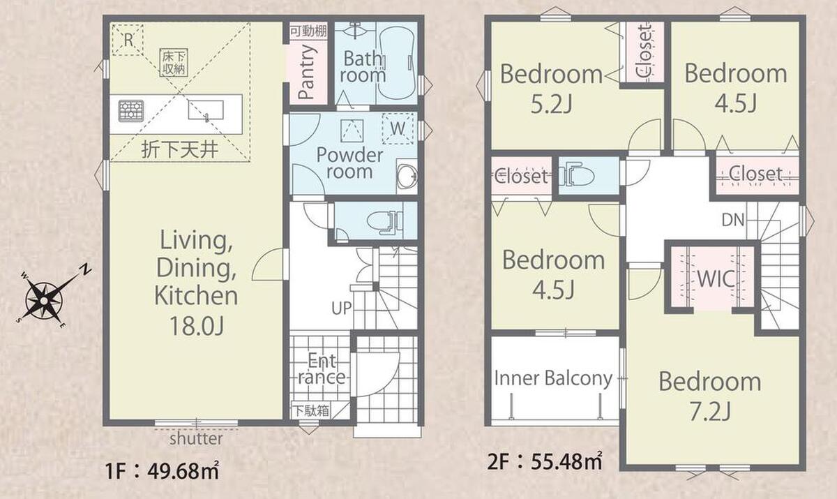 全洋室、食洗機、浴室乾燥機、水廻り集中設計、WIC、パントリー、インナーバルコニー、