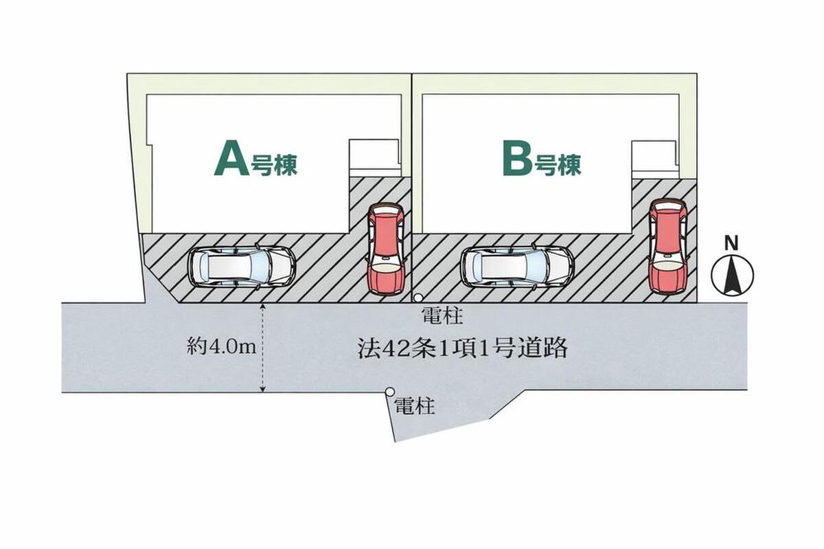 | 駐車場 | 2台(車種による) | 道路の幅員 | 道路幅:4m、アスファルト舗装 |