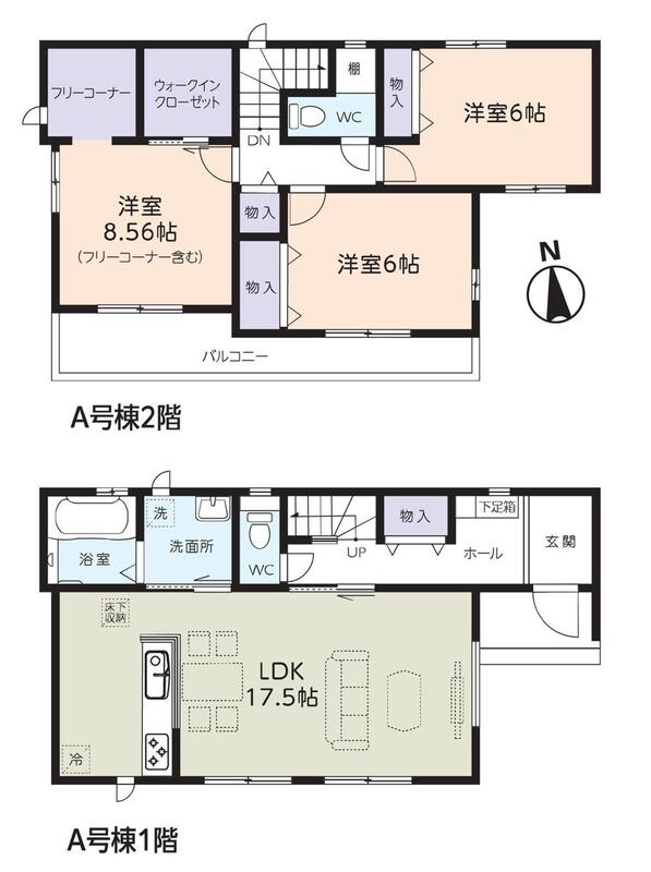 | 建物面積 | 96.56m2・97.7m2 | 土地面積 | 102.66m2・106.43m2 |