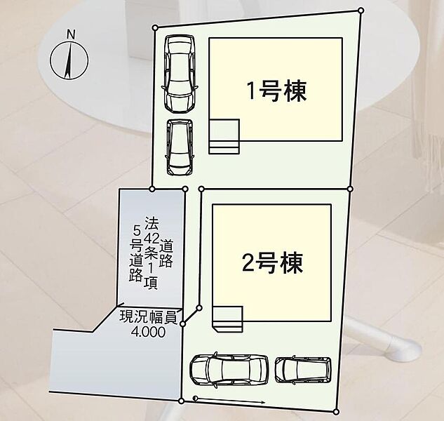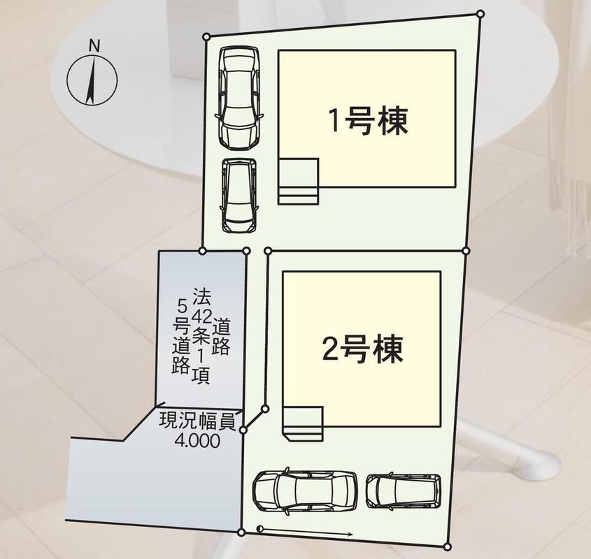 | 駐車場 | 2台(車種による) | 道路の幅員 | 道路幅:4m、アスファルト舗装 |