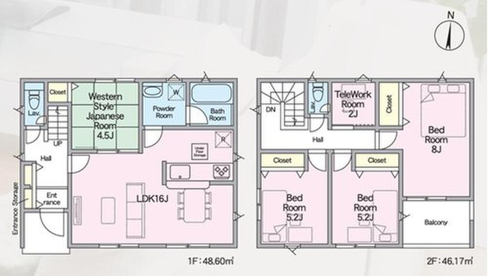 | 建物面積 | 94.77m2 | 土地面積 | 122.15m2・134.42m2 |