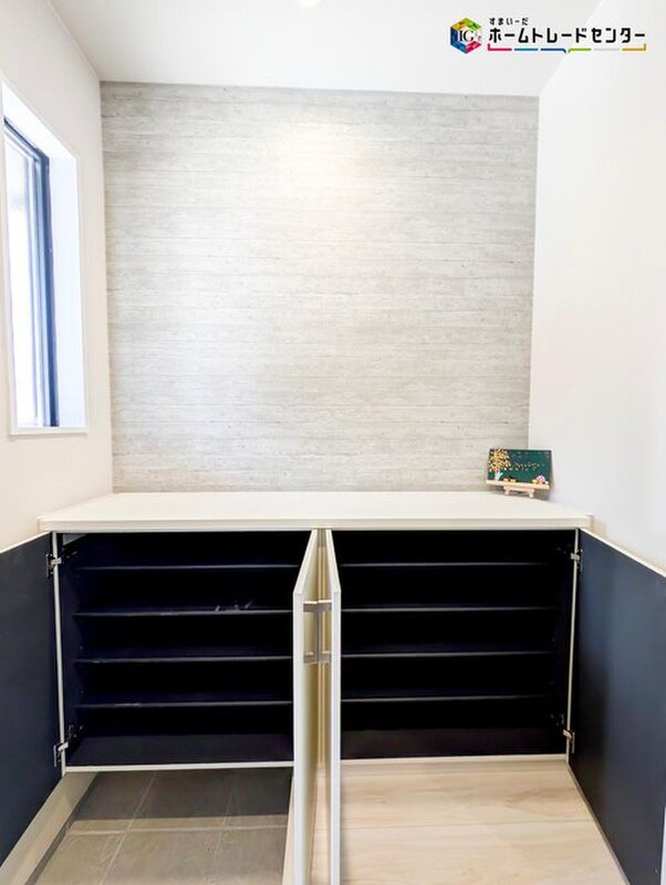 上下棚にたっぷり靴を収納できます。「ただいま」と玄関を開けた瞬間から、奥に広がる空間を明るい室内を感じられますね♪