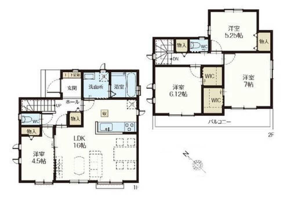 全洋室、水廻り集中設計、リビングイン階段、WIC、ホール物入、ワイドバルコニー、駐車2台可能等!