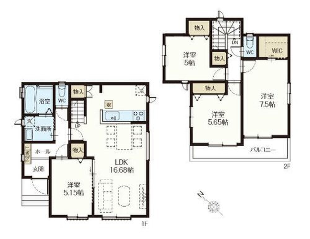 収納力のあるWIC付きプラン!駐車2台可能!