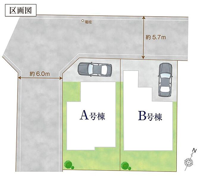 | 建物面積 | 93.57m2・94.81m2 | 土地面積 | 112.02m2・112.35m2 |