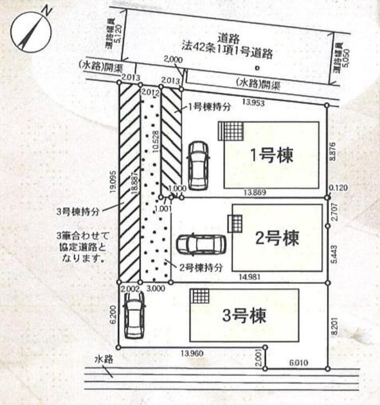 | 駐車場 | 1台 | 道路の幅員 | 道路幅:5m~5.1m、アスファルト舗装、北西側5.05m~5.11m公道 |