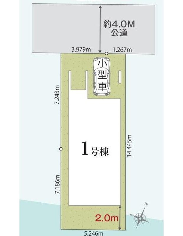 | 駐車場 | 1台 | 道路の幅員 | 道路幅:4m、アスファルト舗装、北側4m公道 |