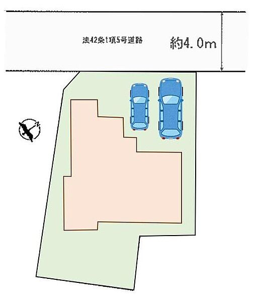 | 駐車場 | 2台 | 道路の幅員 | 道路幅:4m、アスファルト舗装、北西側4m私道 |