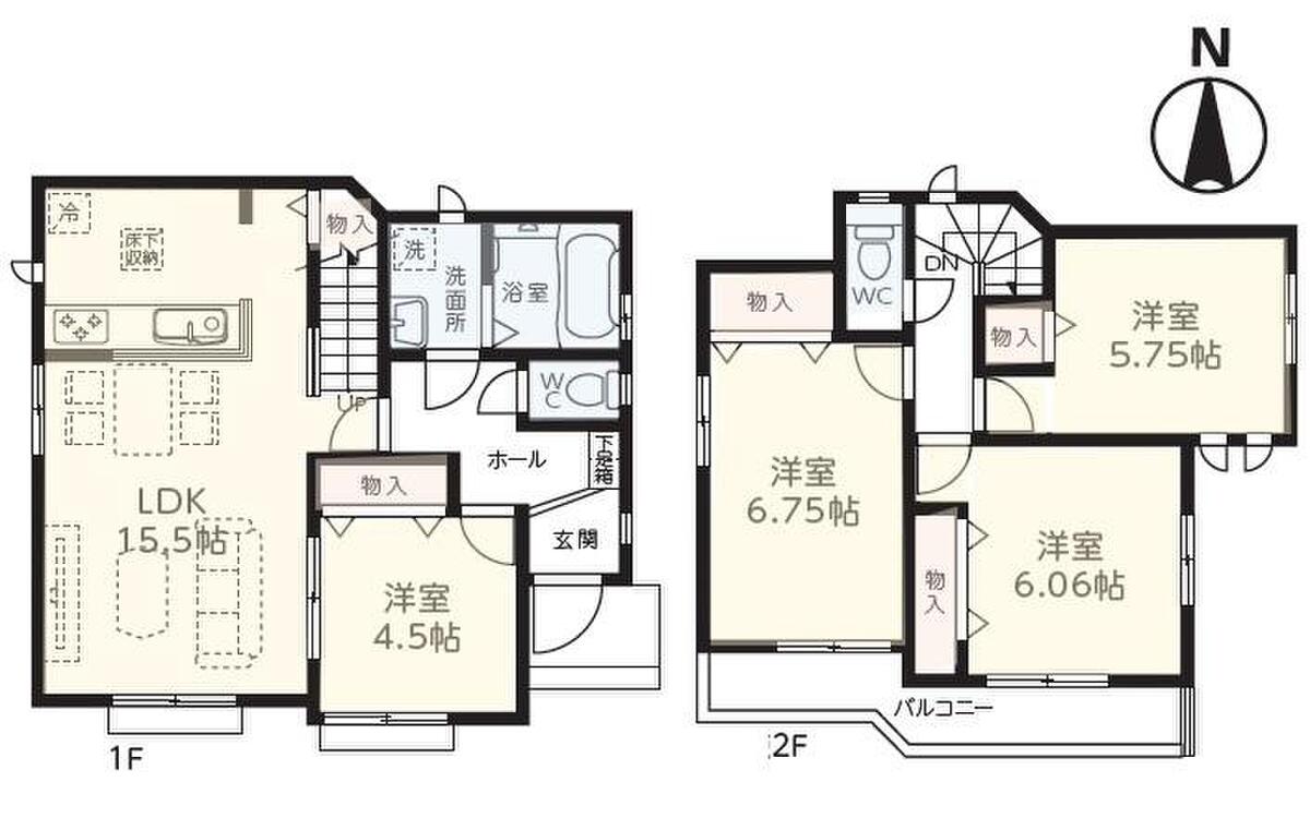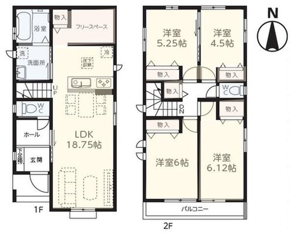 | 建物面積 | 90.15m2~97.09m2(実測) | 土地面積 | 108.15m2~124.45m2(実測) |